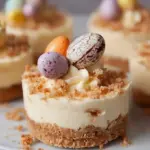 Kleine, cremige Käsekuchen mit einer knusprigen Keksbasis, perfekt für Frühlingsfeste und Osterfeiern.